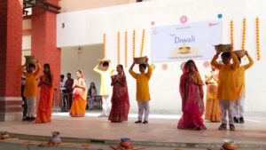 Adding a regional touch to the celebration, students presented a vibrant showcasing of Chhath Puja, highlighting Bihar’s traditional customs and devotion. The Rangoli exhibition added colors and artistry to the festive ambiance, displaying students’ creativity and teamwork.