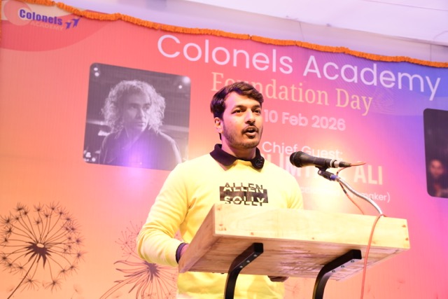 Colonels Academy celebrated its Foundation Day with great enthusiasm, pride, and grandeur in the esteemed presence of renowned filmmaker Imtiaz Ali, who graced the occasion as the Chief Guest. He was accompanied by distinguished guests Mr. Gurubachan and Mr. Nitin Gupta.