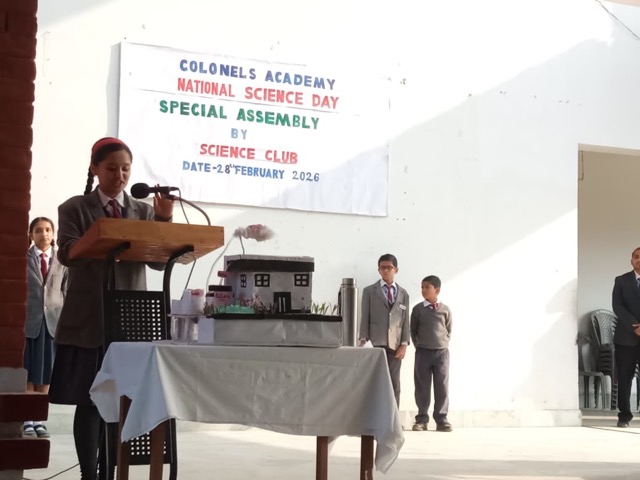 Colonels Academy celebrated National Science Day with great enthusiasm and intellectual spirit on 28th February 2026 at the J. Krishnamurthy Amphitheatre. The event was organised by the Science Club to honour the remarkable discovery of the Raman Effect by C. V. Raman, for which he was awarded the Nobel Prize in Physics.